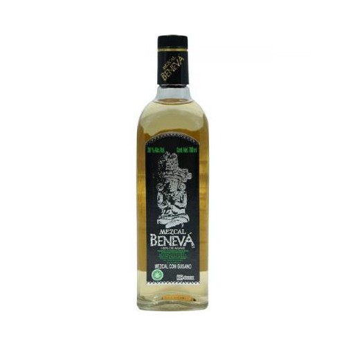 Mezcal traditionnel avec le vers de Gusano. A la différence de la tequila qui ne doit être fabriquée qu'avec l'agave "azul", le mezcal peut être réalisé avec différentes espèces d'agave. Le mezcal beneva contient 100% d’agave, de piñas (cœur de l’agave) cuites et distillées.