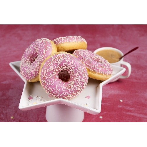 Beignet nature fourré à la mangue et nappé d'un glacage jaune aux billes décor multicolores 70 g