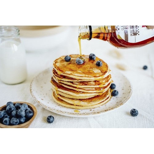 Mignardises de festives, mini pancakes surmontés de crème chantilly,...