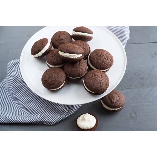 12 petits gâteaux au chocolat en forme de macaron enfermant une...