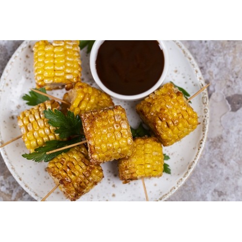 Tronçons de maïs bouillis nappés de crème fraiche épices mexicaines,...