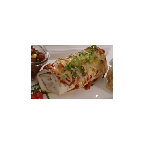 Grande tortillas de blé garnie d'un éffiloché de boeuf aux épices mex,...