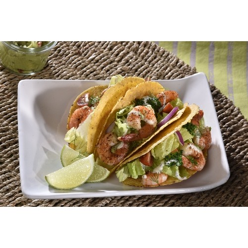 Tacos garnis de morceaux de boeuf mariné, tomate, salade et oignons,...