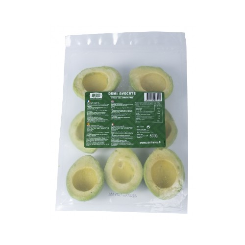 Demi avocat pelé garni de poulet fajitas, haricots black turtle,...