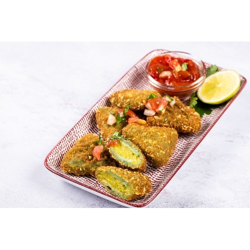 Demi piment jalapeño rouge garni de fromage frais et enrobé de panure légère