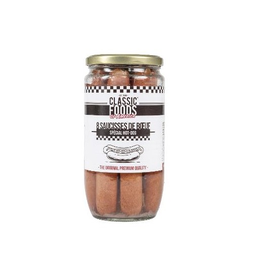 Pain hot dog moelleux garni d'une saucisse de boeuf, de sauce barbecue...