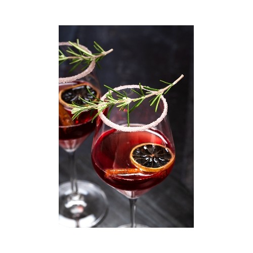 Cocktail sans alcool à base d'eau pétillante, jus de canneberge et sirop d'érable.