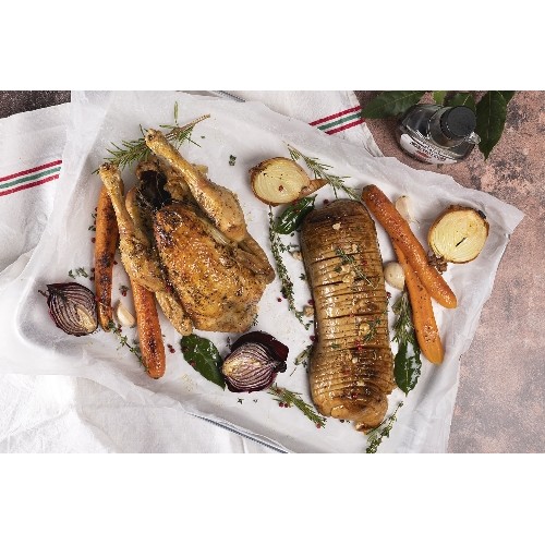 Poulet roti caramélisé au sirop d'érable servie avec une courge butternut à l'érable. Une recette sucrée-salée parfaite pour les fêtes.