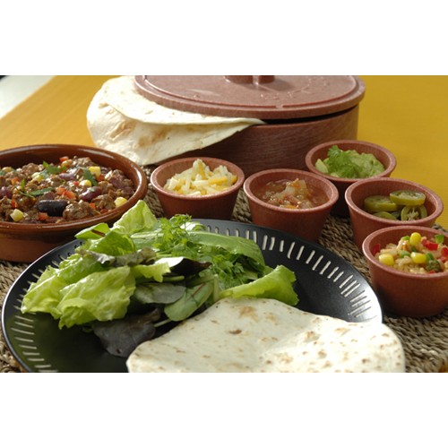 Tortillas de blé chaudes à garnir de viande et légumes cuisinés à la mexicaine, guacamole, sauce rouge, mélange de fromage rapè, piments jalapeños et de riz mexicain.