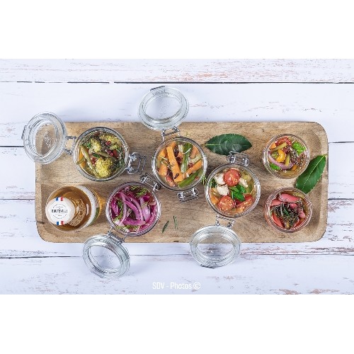 Assortiments de légumes croquants aux aromates, marinés au vinaigre gastronomique Végétal Bouteville.
