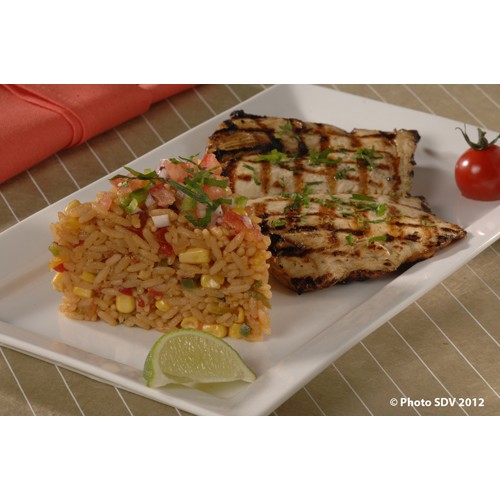 Un filet de poulet grillé et relevé d'épices texanes, servi avec un riz façon Tex-Mex.