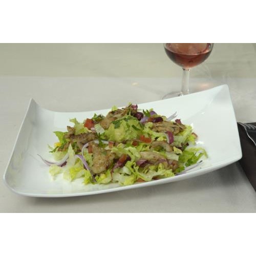 Généreuse salade composée de poulet fajitas, salade croquante, maïs, tomates, oignons et guacamole.